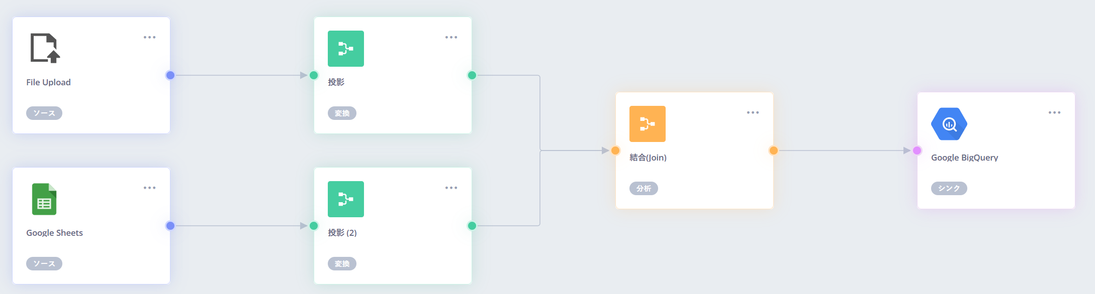 ・任意のフィールドを抽出することができる「投影」タスクを用いて、CSVとGoogleスプレッドシートからGoogle BigQueryに連携するデータのみを抽出。